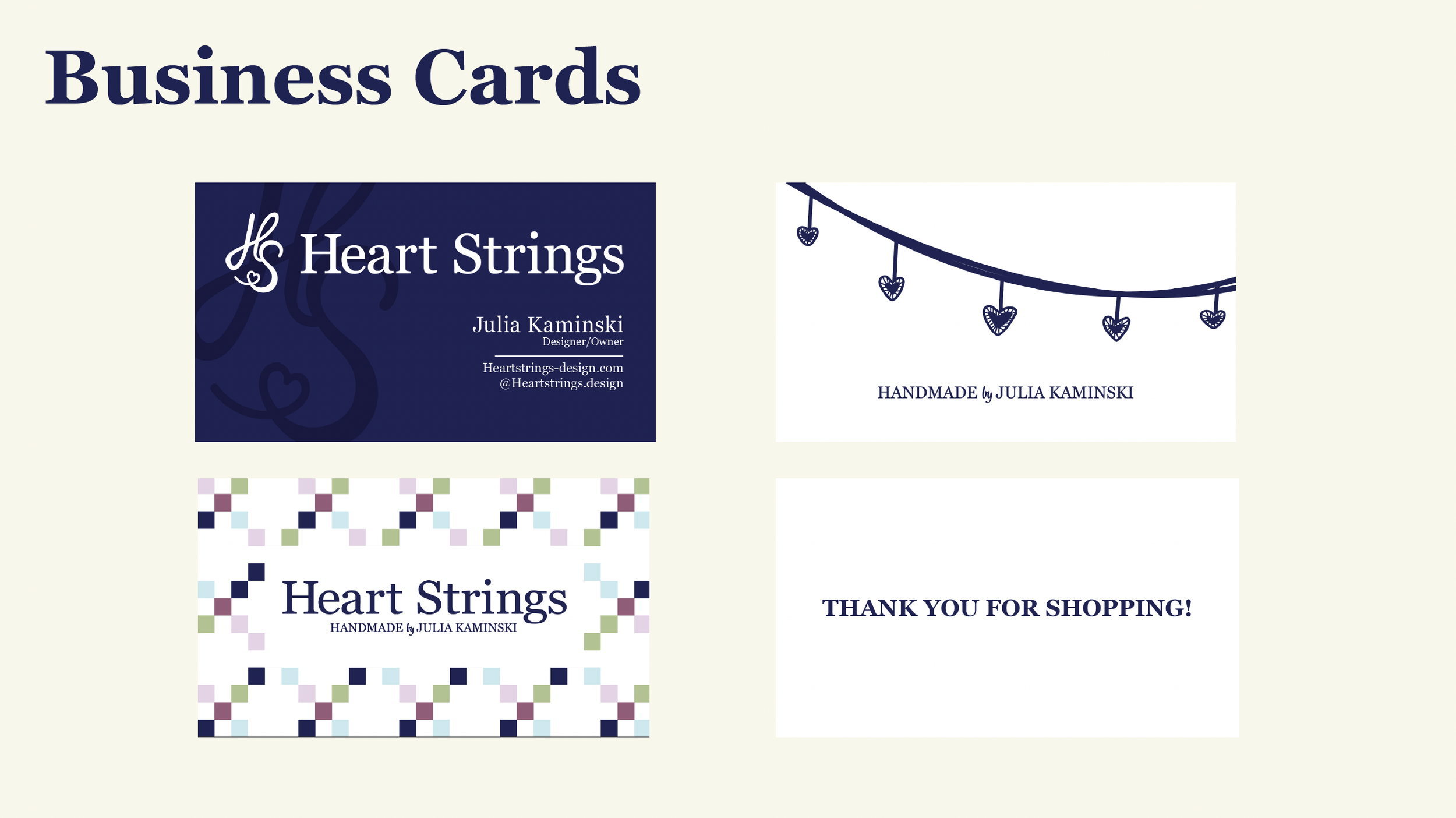 Heart Strings Handmade clothing and accessories made by Julia Kaminski. Senior Project Branding YearFall 2025